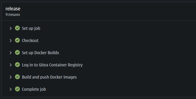 Вот и всё. При следующем триггере экшены отработают и окажутся зелёными, а образы будут лежать там, где ты заменил registry.example.com/test/myapp на свой адрес.
